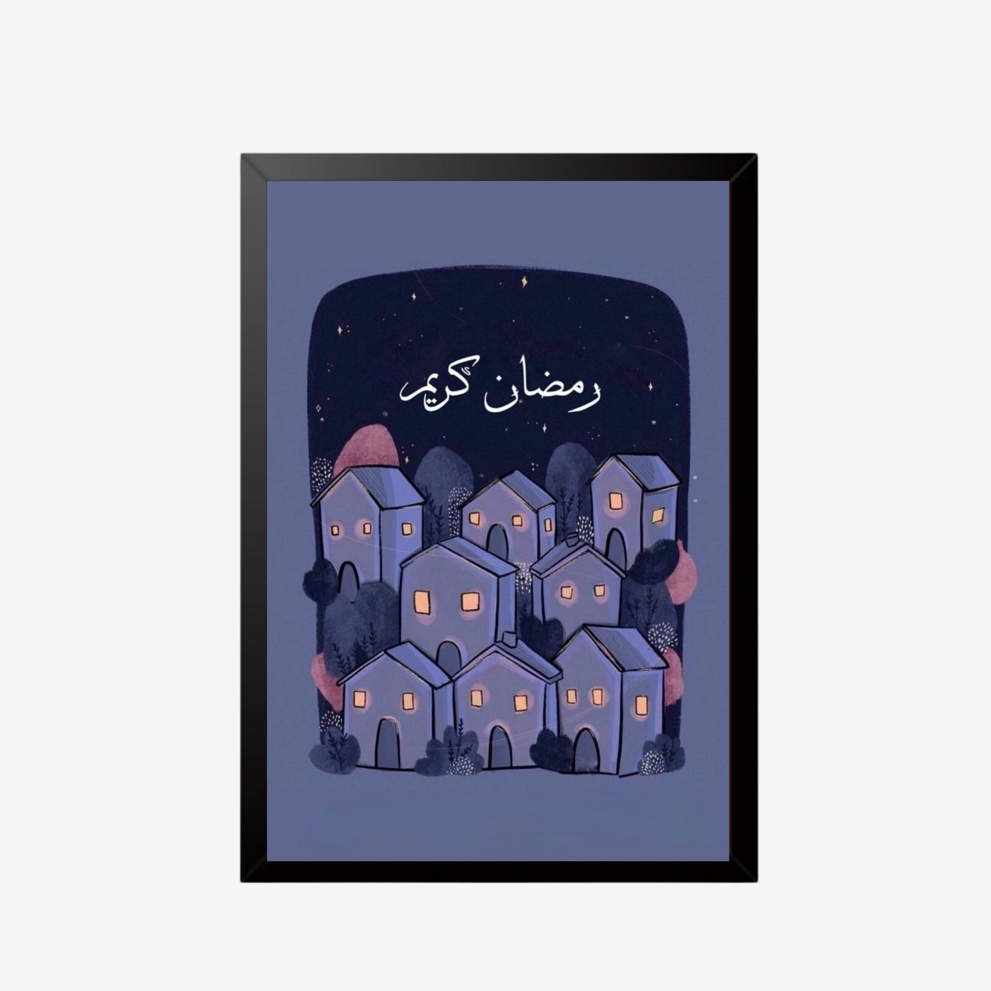 A calm illustrated night scene that brings the peaceful spirit of Ramadan into your home.